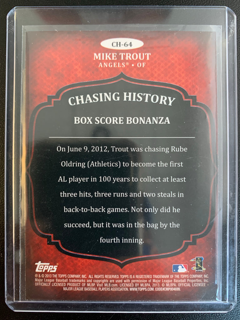 2013 TOPPS BASEBALL #CH-64 LOS ANGELES ANGELS - MIKE TROUT CHASING HISTORY HOLOFOIL INSERT