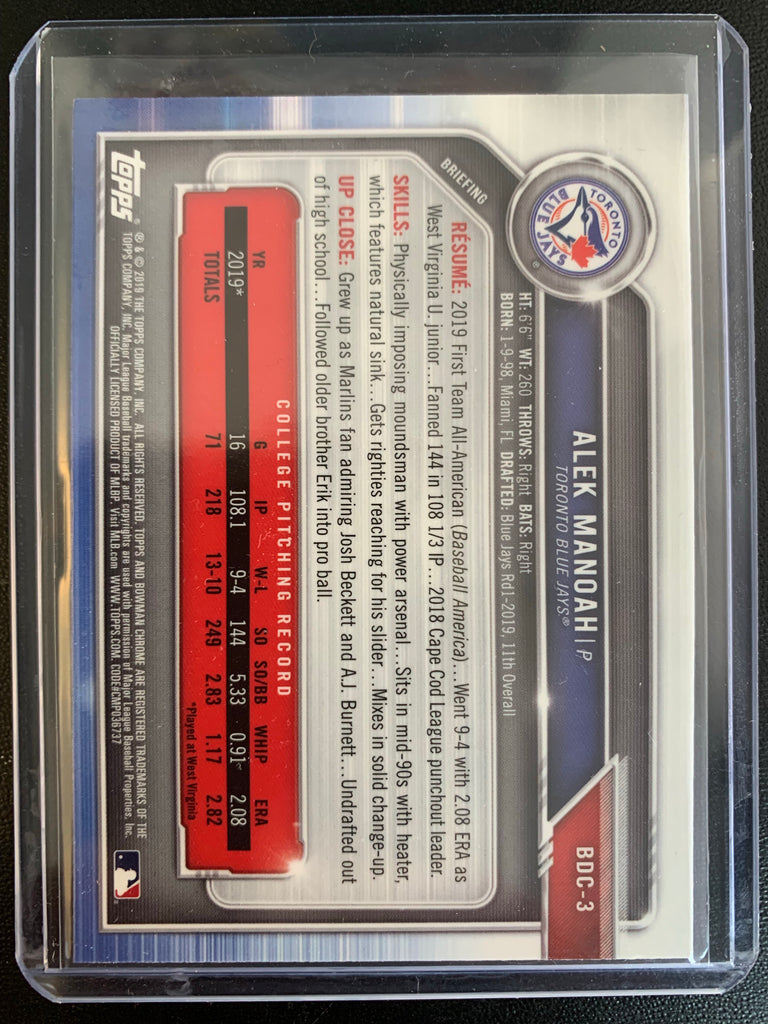 2019 BOWMAN DRAFT CHROME BASEBALL #BDC-3 TORONTO BLUE JAYS - ALEK MANOAH BOWMAN CHROME 1ST ROOKIE CARD