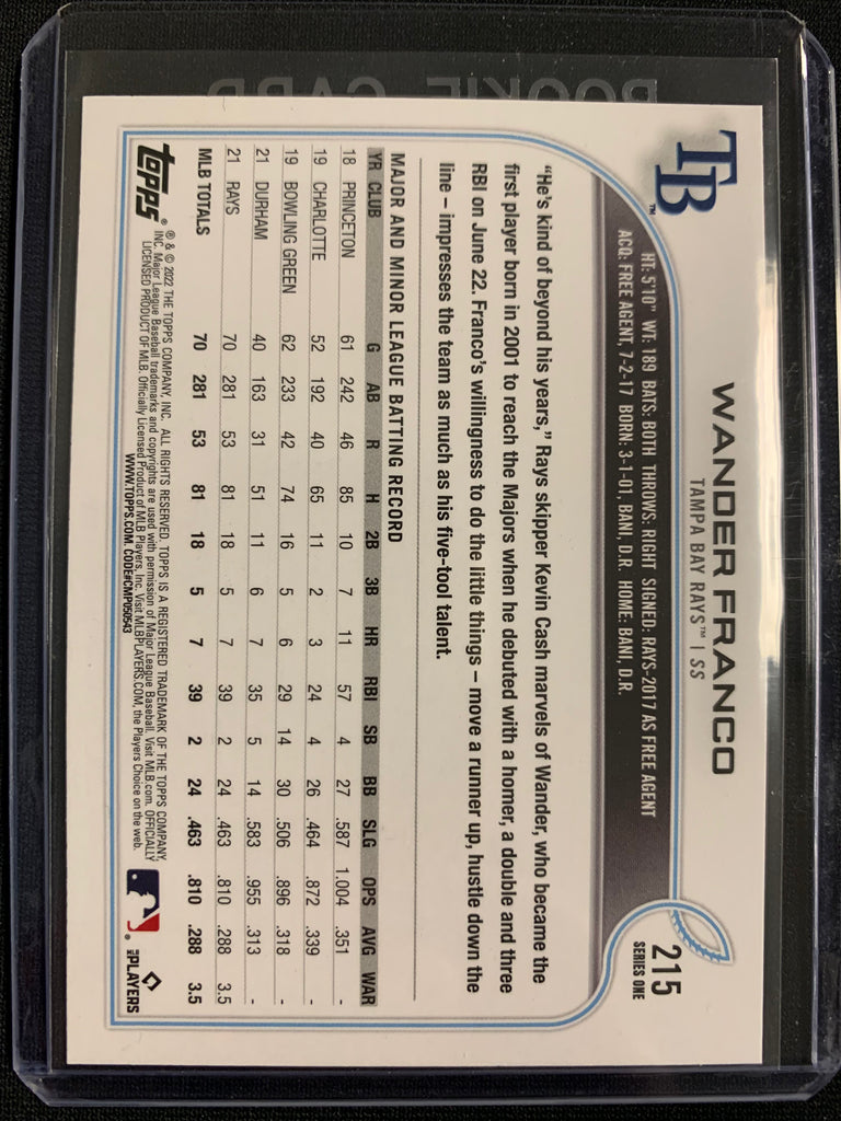 2022 TOPPS SERIES 1 BASEBALL #215 TAMPA BAY RAYS - WANDER FRANCO BASE ROOKIE CARD