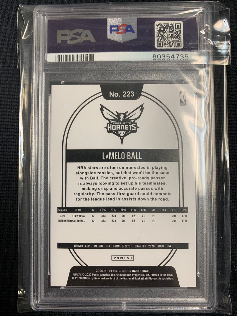 2020-2021 PANINI NBA HOOPS BASKETBALL #223 CHARLOTTE HORNETS - LAMELO BALL ROOKIE CARD GRADED PSA 10 GEM MT