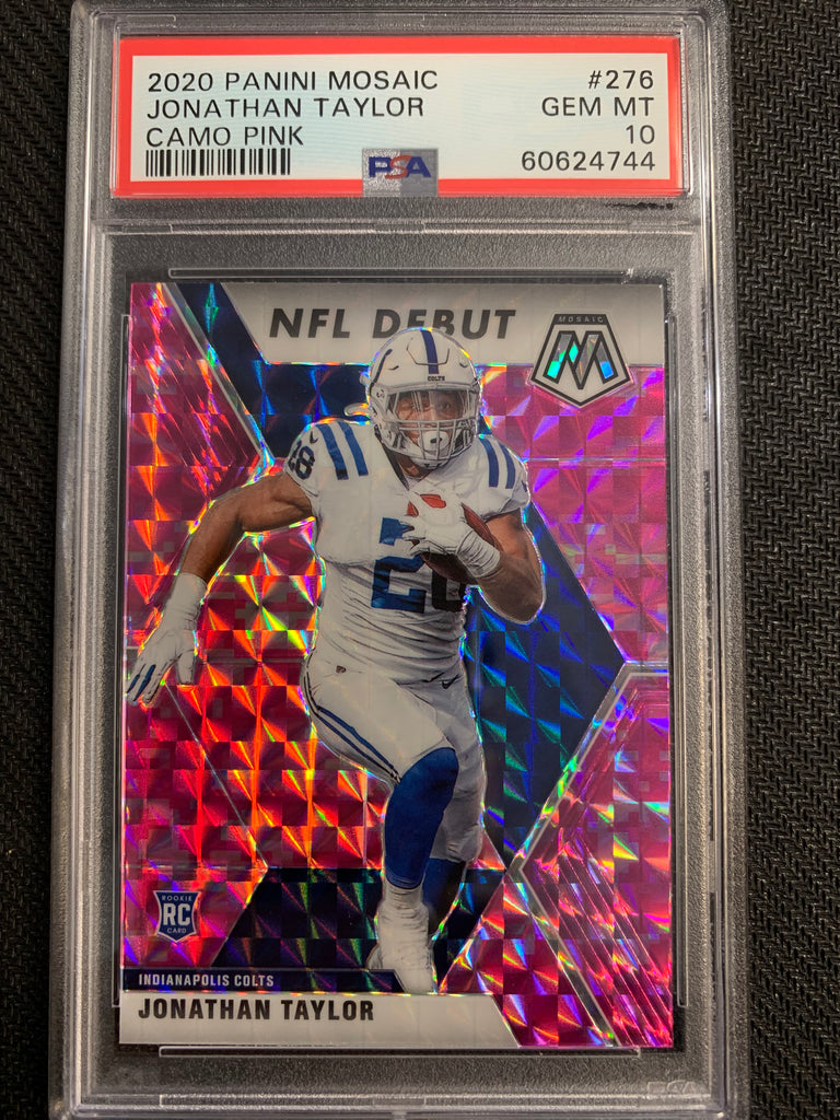 2020 PANINI MOSAIC FOOTBALL #276 INDIANAPOLIS COLTS - JONATHAN TAYLOR PINK CAMO PARALLEL ROOKIE GRADED PSA 10 GEM MINT