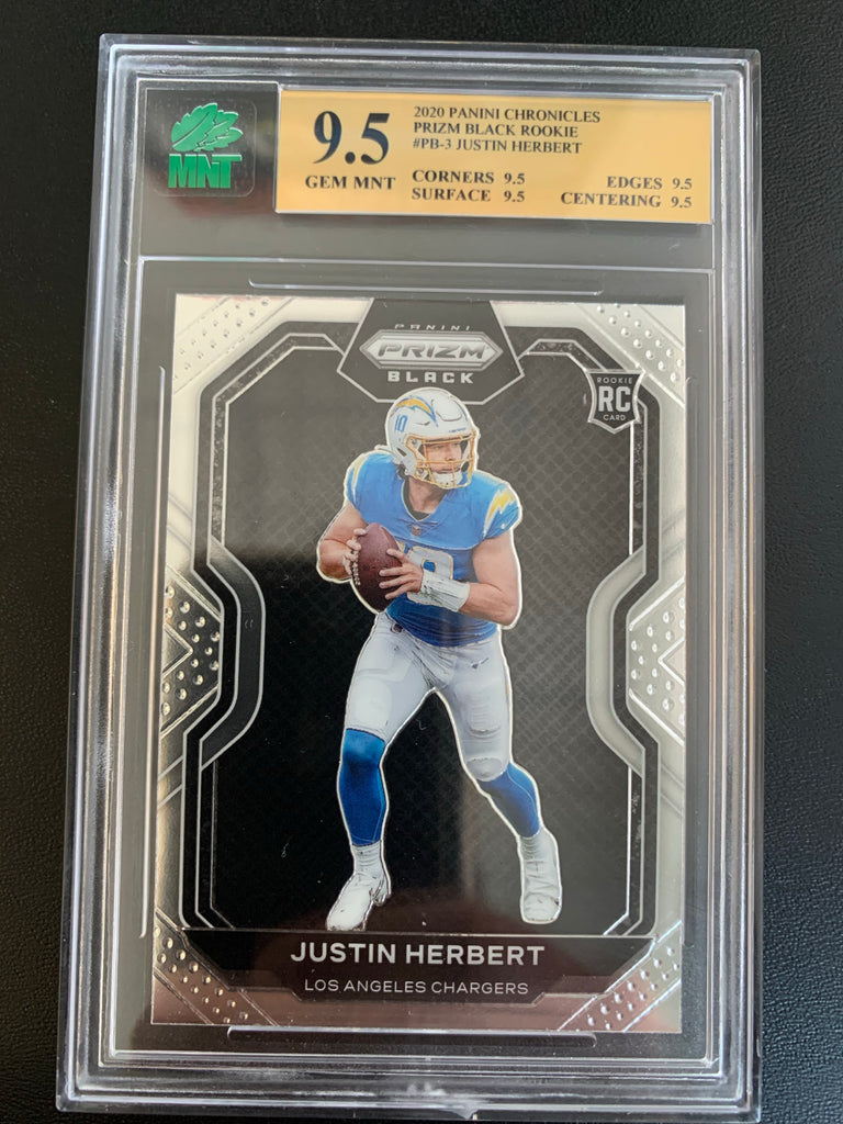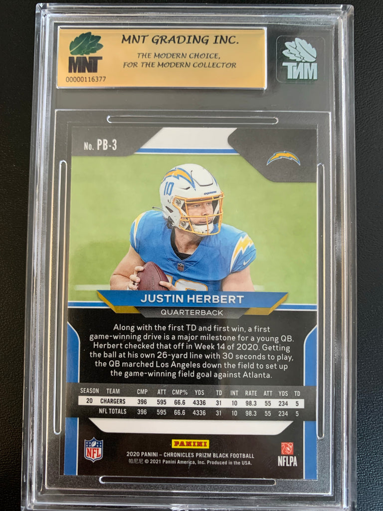 2020 PANINI CHRONICLES FOOTBALL #PB-3 LOS ANGELES CHARGERS - JUSTIN HERBERT PRIZM BLACK ROOKIE CARD GRADED MNT 9.5 GEM MINT