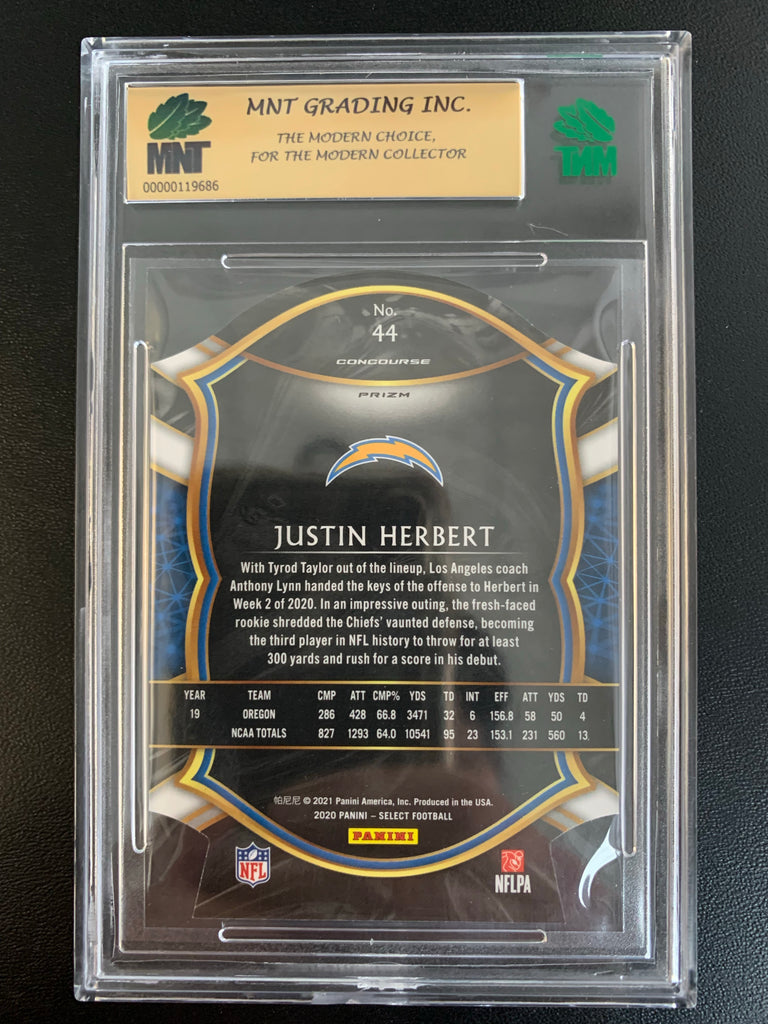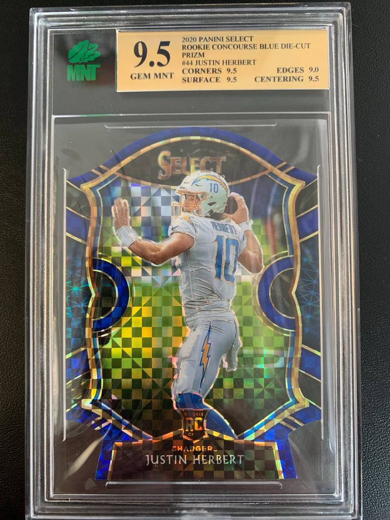 2020 PANINI SELECT FOOTBALL #44 LOS ANGELES CHARGERS - JUSTIN HERBERT ROOKIE CARD CONCOURSE BLUE DIE-CUT PRIZM GRADED MNT 9.5 GEM MINT