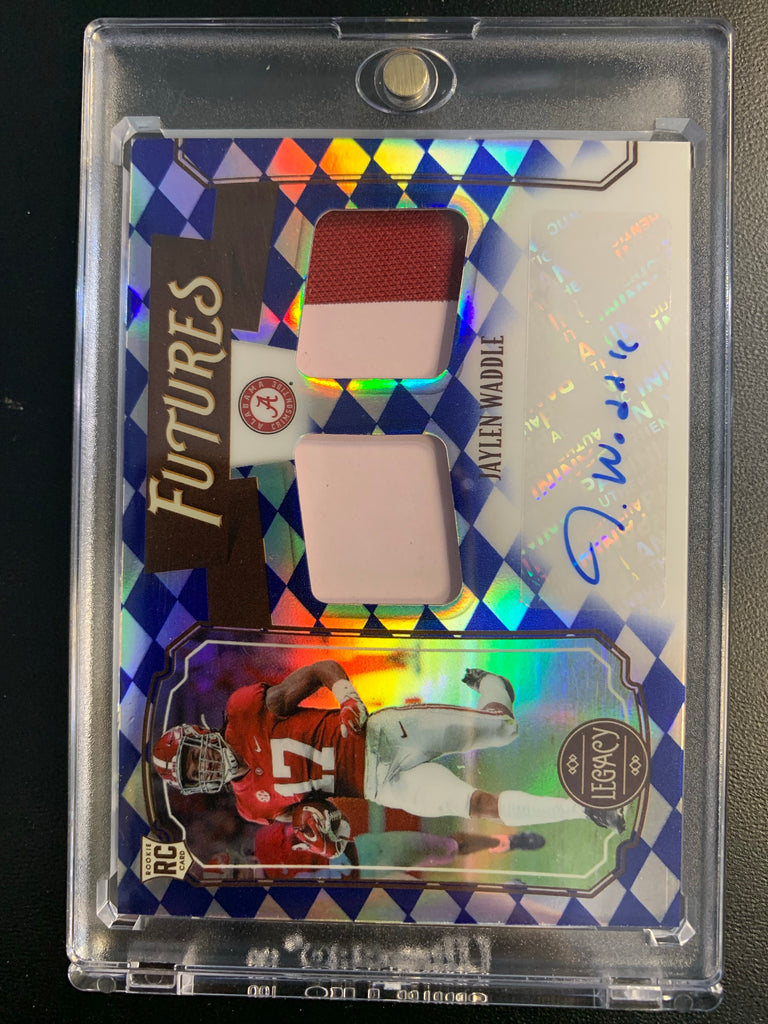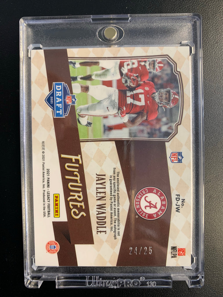 2021 PANINI LEGACY FOOTBALL #FD-JW MIAMI DOLPHINS - JALEN WADDLE SAPPHIRE FUTURES AUTOGRAPHED ROOKIE PATCH SERIAL NUMBERED 24/25