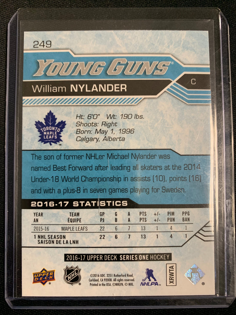 2016-17 UPPER DECK HOCKEY #249 TORONTO MAPLE LEAFS - WILLIAM NYLANDER YOUNG GUNS ROOKIE CARD