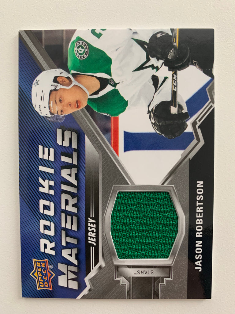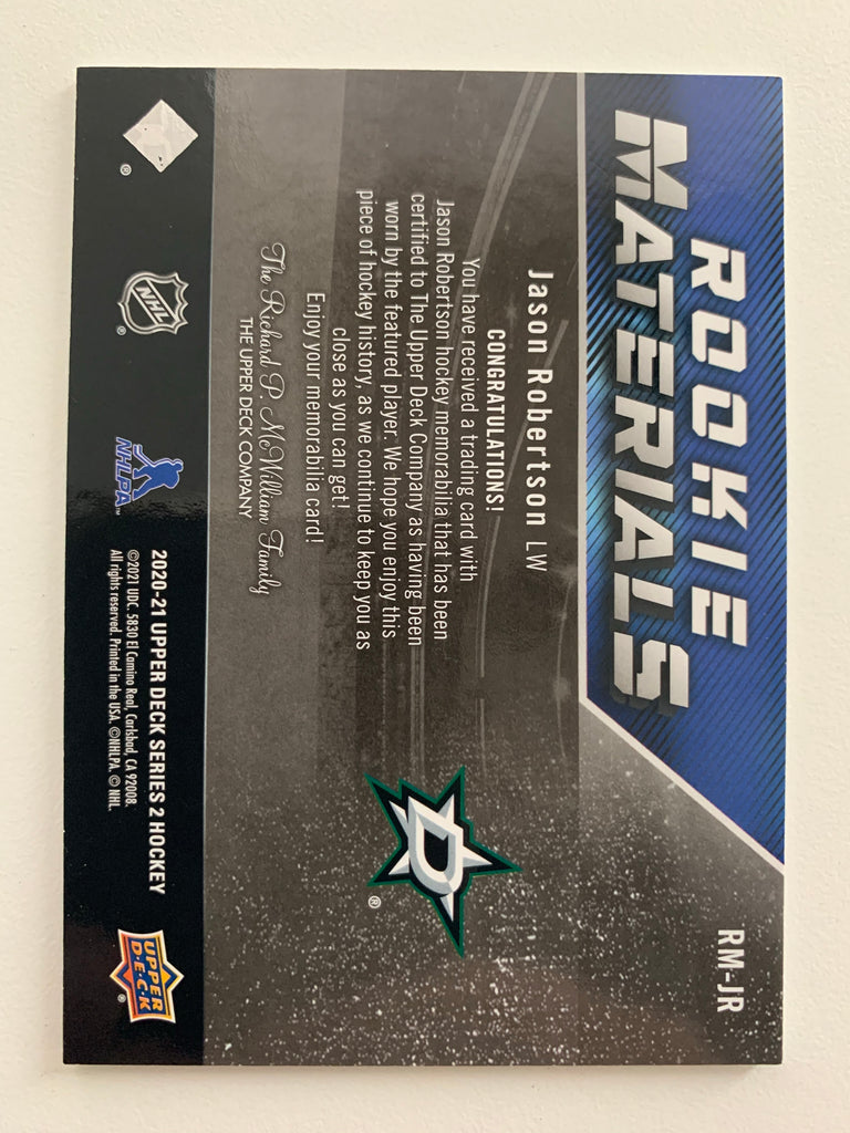 2020-21 UPPER DECK SERIES 2 HOCKEY #RM-JR DALLAS STARS - JASON ROBERTSON ROOKIE MATERIALS JERSEY CARD