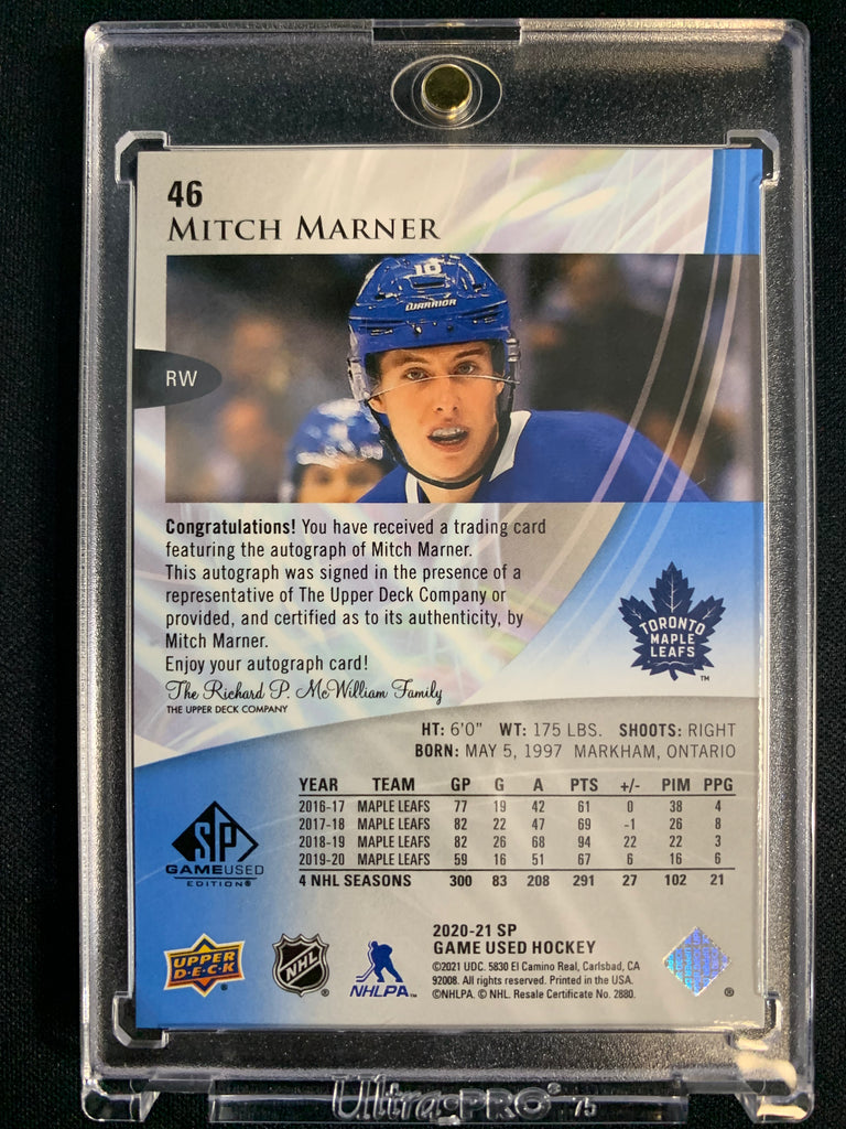 2020-21 UD SP GAME USED HOCKEY #46 TORONTO MAPLE LEAFS - MITCH MARNER AUTOGRAPH BLUE PARALLEL