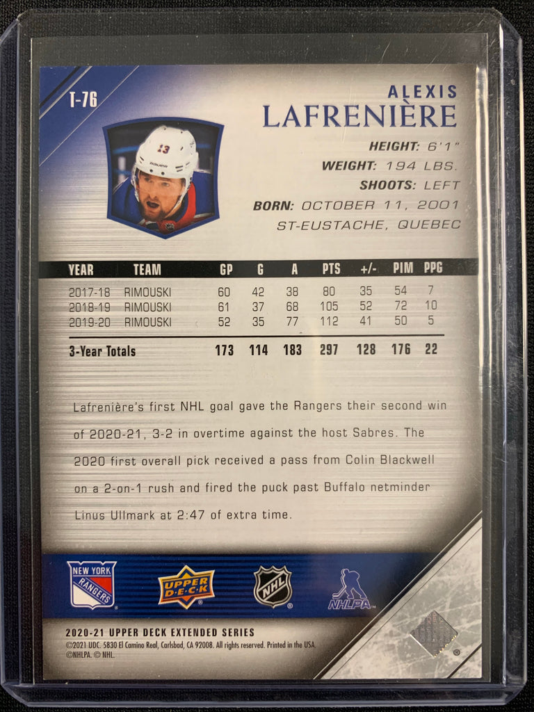 2020-21 UPPER DECK HOCKEY #T-76 NEW YORK RANGERS - ALEXIS LAFRENIERE RETRO YOUNG GUNS ROOKIE CARD