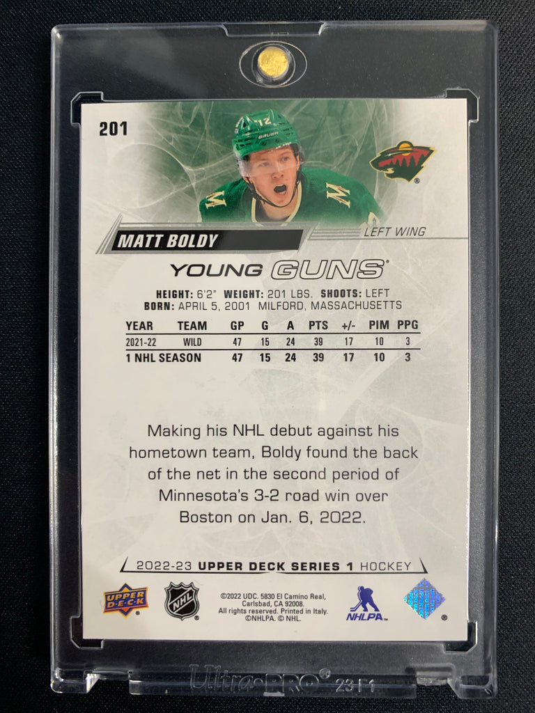2022-23 UPPER DECK S1 HOCKEY #201 MINNESOTA WILD - MATT BOLDY YOUNG GUNS ROOKIE CARD - PACK FRESH!
