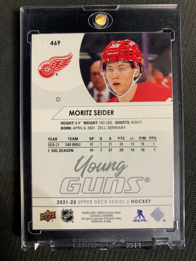2021-22 UPPER DECK SERIES 2 HOCKEY #469 DETROIT RED WINGS - MORITZ SEIDER YOUNG GUNS ROOKIE CARD