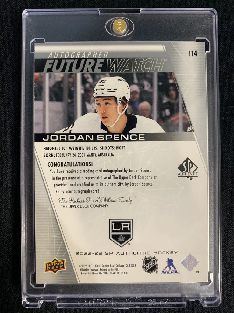 2022-23 UD SP AUTHENTIC HOCKEY #114 LOS ANGELES KINGS - JORDAN SPENCE FUTURE WATCH AUTO ROOKIE 411/999