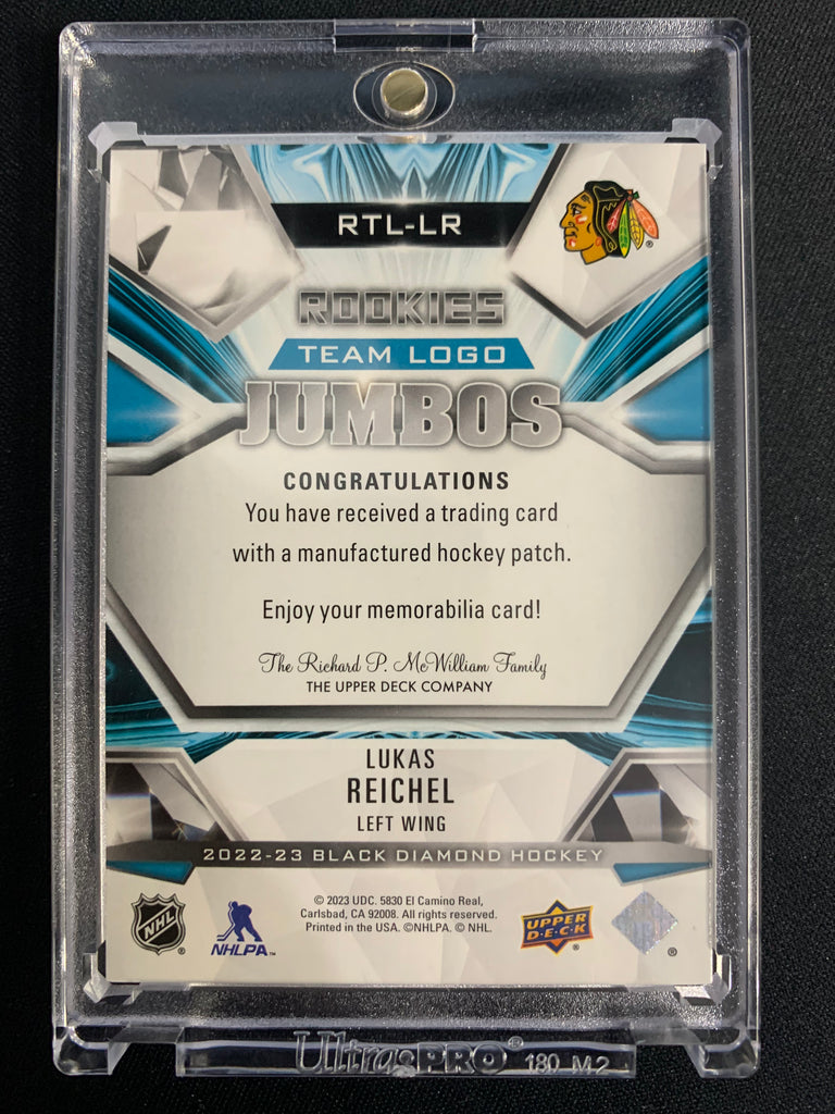 2022-23 UD BLACK DIAMOND HOCKEY #RTL-LR CHICAGO BLACKHAWKS - LUKAS REICHEL ROOKIE TEAM LOGO JUMBOS